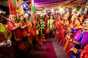 केसरिया गुलाल उड़ाई गई इस दौरान सुमधुर गरबा व भजनों पर बालिकाओं ने गरबा रास किया भजन गायक अरुणा सोनी ने आज बिरज में होली रे रसिया होली रे रसिया… होलिया में उड़े रे गुलाल …मां थारो गरबो घूमतो जाए… मेरे देश की धरती सोना उगले उगले हीरे मोती सहित विभिन्न भजन गरबे प्रस्तुत किया जिन पर माताएं जमकर थिरकी। कलेक्टर बाथम में भी गुलाल उडाई, गरबे के दौरान महिलाओं ने जहां नवदुर्गा के नौ रूप स्वरूप बना रखे थे वहीं हाथों में राष्ट्रीय तिरंगा तथा भगवा ध्वज थाम रखा था । दोपहर में महा अष्टमी का हवन संपन्न हुआ श्रीबाथम ने आहुति दी तथा आरती की । इस दौरान ट्रस्ट अध्यक्ष राजाराम मोतियानी उपाध्यक्ष मोहनलाल भट्ट सचिव हरीश कुमार बिंदल कोषाध्यक्ष सत्यनारायण कसेरा संगठन सचिव पूरणमल अग्रवाल राजेंद्र शर्मा पूर्ण चोइथानी दिनेश वाघेला विश्वदीप टंडन सहित नागरिक मौजूद थे।